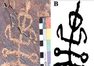 The puzzling glyph, which bears some resemblance to the “squatting man” motif, suggests that insects have long held a place in human lore Source: VT