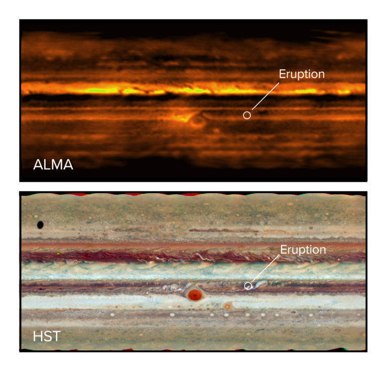 For the first time ever, radio wave images made it possible for scientists to look deep into the atmospheric conditions below Jupiter’s colorful ammonia clouds after an “energetic eruption” took place 50 kilometers (31 miles) beneath the surface. The eruptions are similar to Earth’s thunderstorms and can include lightning.