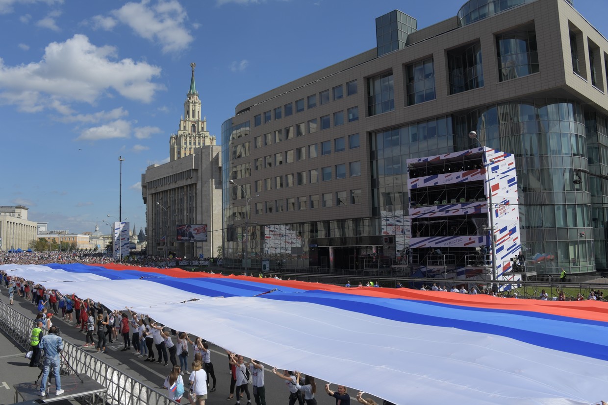 The flash mob already made it into Russia’s record books and attracted over 70,000 people, who flocked to downtown Moscow to see the gigantic flag, the mayor’s office said.
