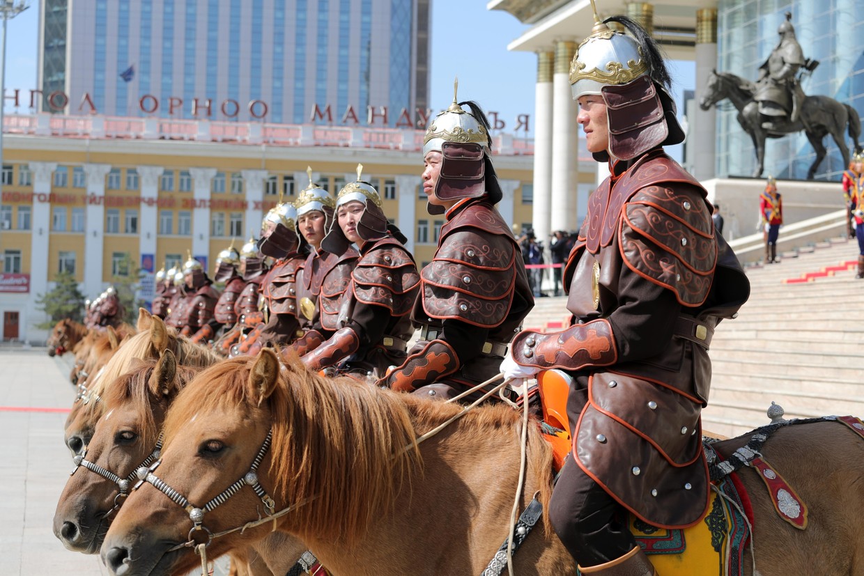 As he approached the presidential palace in the capital Ulaanbaatar, Putin was greeted by a line of horsemen who looked like they just rode off the page of an old Rus’ chronicle – clad in leather armor and tasseled helmets, sitting atop short stocky mounts – one battle-horn blare away from triggering a Kulikovo Battle flashback for anyone familiar with medieval Russian history.