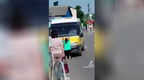 Footage circulating online appears to show a middle-aged man reading aloud from a Ukrainian Supreme Court decision before apparently biting officers attempting to remove him from his vehicle.