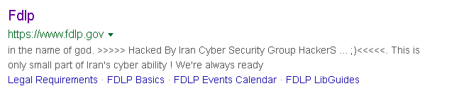 The website run by the FDPL, a US government program set up to ensure US federal government publications are available to public free of charge, was apparently hacked by a group claiming to hail from Iran on Saturday evening.