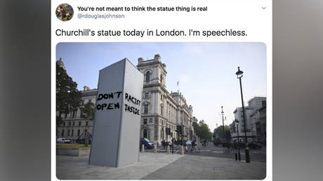 Breitbart journalist Chris Tomlinson suggested there was something sinister afoot after pointing to the fact that a statue of Churchill in London had only recently been boarded up, purportedly in an effort to shield it from Black Lives Matter demonstrators.