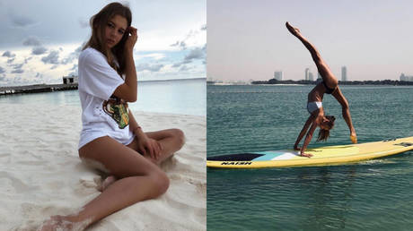 It’s not the first time the supple Soldatova has shown off her seaside skills, earlier in June she posed on a paddleboard while literally bending over backwards.