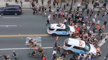 Footage of the incident shows the SUV surrounded by dozens of activists. The vehicle suddenly accelerates and stops several times, as people around it scream in fear. Some of the protesters were knocked to the ground while others tried to cling to the hood as it was speeding away.