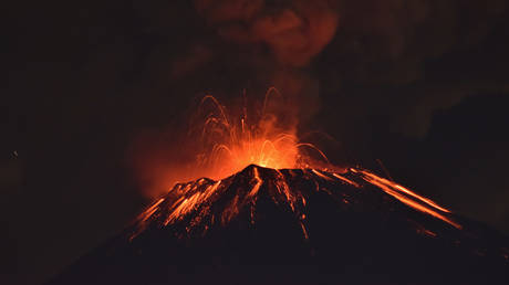 A Mexican volcano’s dramatic eruption has been captured in spectacular footage taken from inside a plane as it flew past the shocking sight.
