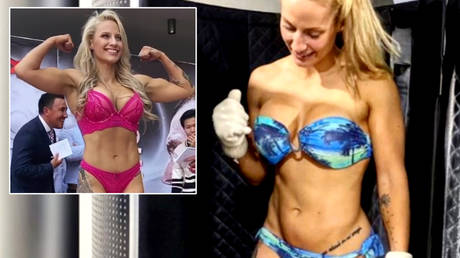 Self-styled as ‘The Blonde Bomber’ the Australian has carved out a career for herself in professional boxing having earlier been a competitive bodybuilder, but has gained more attention from what she does with her training gear out of the ring rather than inside it during sessions.