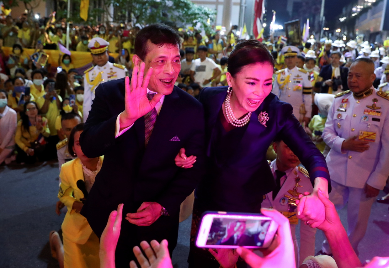 A huge crowd was also awaiting the King at the railway station, but those were royalists, who supported him. They wore yellow colors of the monarch, waved Thailand’s national flags and chanted: “Long live the King.”