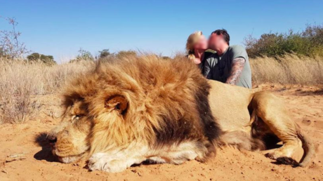 A hunting couple pictured kissing over the corpse of a slain lion they’d just killed is generating outrage and has increased calls for an end to trophy hunting.