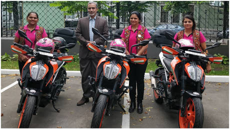 Female bikers from India made a short stop in Moscow as part of their 25,000km trip across three continents, during which the motorcycle enthusiasts hope to promote “women’s pride” and empowerment.